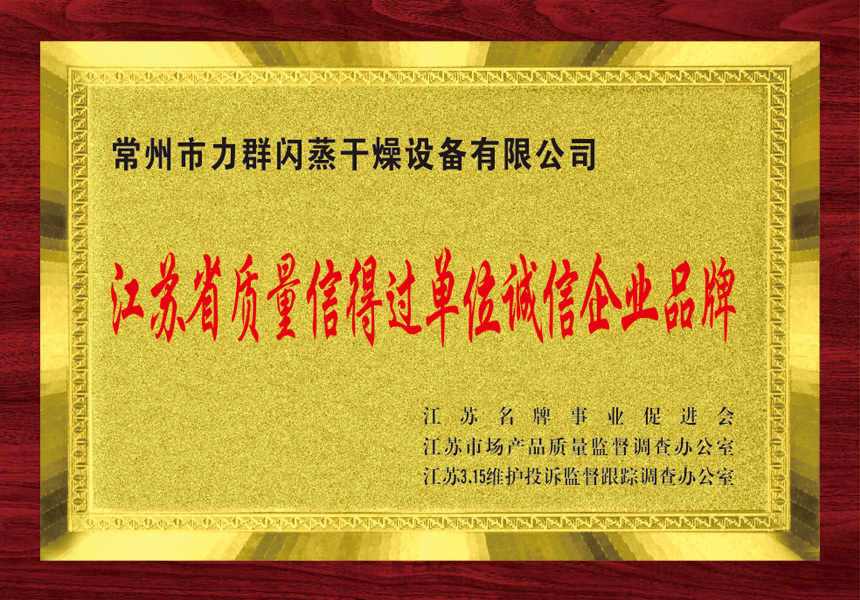 江蘇省質(zhì)量信得過單位誠信企業(yè)品牌