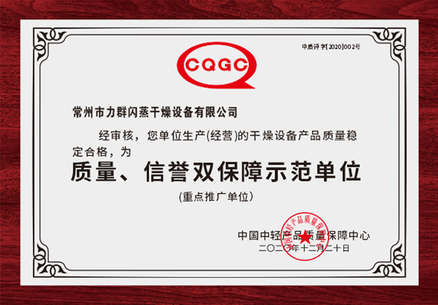 質(zhì)量、信譽(yù)雙保障示范單位