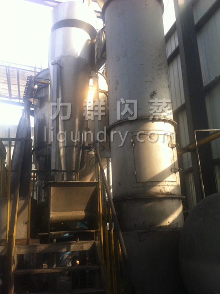 經換熱器加熱后的潔凈空氣被鼓入進風口,以適宜的速度旋入干燥室底部的環隙,然后按切線方向進入干燥室,并呈螺旋狀上升:同時,物料則由可無級調速的加料器定量加入塔內。在干燥塔內,物料與熱空氣進行充分、高效的質熱變換,被干燥的粉狀物料隨同熱風一起輸送至分離器,其中成品收集包裝,而尾氣則進一步經除塵裝置處理后排空。